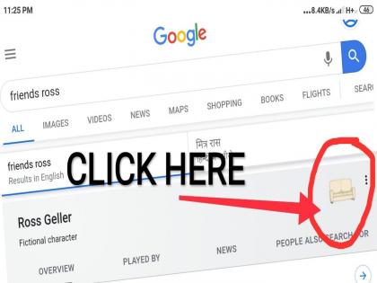 गुगलवर फ्रेंड्स सीरिजमधील मुख्य पात्रांबद्दल सर्च केलात तर तुम्हाला त्यांच्या संपूर्ण माहितीसह त्यांची खासियतही पाहायला मिळते आहे. उदाहरण सांगायचं तर गुगलवर रॉस गेलर सर्च केल्यावर डाव्या बाजूला सोफा पहायला मिळतोय. या सोफ्यावर क्लिक केल्यावर तुम्हाला रॉसच्या आवाजात सीट इथे तिथे होताना दिसते. सारखं सारखं सोफ्यावर क्लिक केल्यावर काही वेळानंतर सोफा तुटून जातो आणि रॉसच्या आवाजात ऐकू येतं की ओके, आय डोन्ट थिंक इट्स गॉन पिवट एनीमोर (OK, I don't think it's gonna pivot anymore).