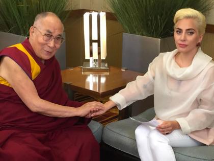 बौद्ध धर्मगुरू दलाई लामा यांच्यासोबत लेडी गागा