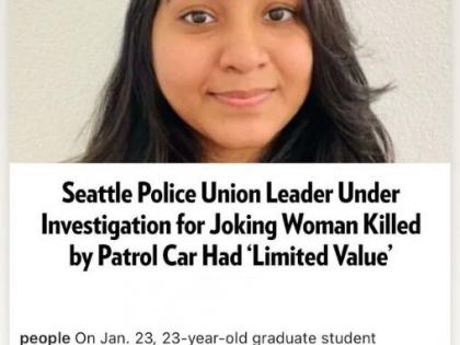 अमेरिकेत जान्हवी कंदुला या 23 वर्षीय भारतीय विद्यार्थिनीच्या दुःखद मृत्यूने अनेकांना धक्का बसला. 23 जानेवारी रोजी विद्यार्थिनी रस्ता ओलांडत असताना तिला सिएटल पोलिसांच्या वाहनाने धडक दिली आणि यात तिचा मृत्यू झाला. यातच पोलिसांमध्ये सुरु असलेल्या संभाषणाचे व्हिडीओ व्हायरल होत असून यावेळी ते हसत असल्याचे निदर्शनास येत आहे. त्यात ऐकायला येते की, "जान्हवीच्या जीवाची काय किंमत आहे? शहर प्रशासनाने तिला काही पैसे द्यावेत. 11 हजार डॉलर्सचा एक चेक चालू शकतो..!".