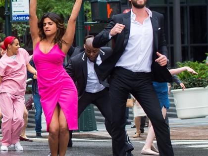 पिंक कलरच्या लो नेक गाऊन तिचे सौंदर्य आणखीच खुलून आलेय. पण न्यूयॉर्कच्या रस्त्यावर प्रियांकाने असे नाचत का सुटावे? असा प्रश्न तुम्हाला पडला असेल.