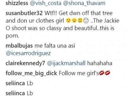 किमच्या इन्स्टाग्राम पेजवर तिच्या या फोटोवर अनेकांनी कॉमेण्ट केल्या. त्यामध्ये निगेटिव्ह कॉमेण्ट्सचा अधिक समावेश आहे. एका यूजर्सने लिहिले की, ‘आता हे काय नवीन, झाडावरून खाली उतर आणि कपडे घाल, जॅकीचे फोटोशूट खूपच क्लासी आणि सुंदर असायचे हे तर पोर्न आहेत.’ या फोटोशूटसाठी किमने प्रसिद्ध फॅशन फोटोग्राफर मार्ट आणि मर्कस यांच्यासोबत काम केले आहे. किमचा हा फोटो मार्टनेही शेअर केला आहे. त्याच्या कॅप्शनमध्ये लिहिले की, ‘नाइट बर्ड’ त्याचबरोबर त्याने किमला ‘ट्रु ब्यूटी’ असेही संबोधले आहे.