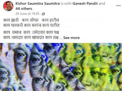 शिवसेनेचे सांगोल्याचे आमदार शहाजीबापू पाटील यांचा 'काय झाडी, काय डोंगार काय हाटील' या वाक्याची एक ऑडिओ क्लिप व्हायरल झाला होता. या ऑडिओवरुन अनेकांनी मिम्स तयार केले. इतकंच नाही तर त्यावर काही गाणीदेखील तयार करण्यात आली. मात्र, सौमित्र यांनी या वाक्याला धरुन राजकीय विषयाकडे गांभीर्याने पाहायला लावणारी कविता सादर केली आहे.