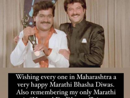 Anil Kapoor : राज्यात काल मराठी भाषा दिवस उत्साहात साजरा करण्यात आला. अनेकांनी सोशल मीडियावर पोस्ट शेअर करत मराठी भाषा दिनाच्या शुभेच्छा दिल्या. दरम्यान एका पोस्टने सर्वांचेच लक्ष वेधले. बॉलिवूड अभिनेता अनिल कपूरनेही एक खास पोस्ट केली. दिवंगत अभिनेते लक्ष्मीकांत बेर्डे (Laxmikant Berde) सोबत फोटो शेअर करत त्याने 'मराठी भाषा दिवस' च्या शुभेच्छा दिल्या.