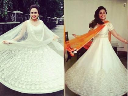 आपण सर्वांपेक्षा वेगळे दिसावे असे प्रत्येकालाच वाटत असते आणि मुली तर त्यांच्या लुकविषयी फारच पझेसिव्ह असतात. आपला ड्रेस हा सर्वांमध्ये उठून दिसावा असे त्यांचे म्हणणे असते. एखाद्या पार्टीला, कार्यक्रमाला गेल्यावर आपल्यासारखाच ड्रेस घातलेली एखादी मुलगी दिसली तर काय होते हे वेगळे सांगायला नको. फिल्मी दुनियेत तर फॅशन, लुक आणि अॅक्सेसरीजकडे अभिनेत्री विशेष लक्ष देतात. पण असे असूनदेखील काही वेळा दोन अभिनेत्रींचा ड्रेस एकदम सेम टू सेम असतो. अमृता खानविलकर आणि नेहा पेंडसे यांनी एकदमच सारखा ड्रेस घातलेला एक फोटो सध्या सोशल साईट्सवर व्हायरल झाला आहे. हा फोटो बघून अनेकांच्या भुवया उंचावत आहेत. ड्रेसपर्यंत ठीक होते पण या दोघींनीही त्या ड्रेसमध्ये फोटो काढताना पोझदेखील अगदी सारखीच दिली आहे. पांढराशुभ्र घेरदार अनारकली घालून फेर धरत आपला सुंदर ड्रेस दाखवण्याचा मोह या दोघींनाही आवरला नाही. अमृताने काही दिवसांपूर्वी तिचा फोटो सोशल मीडियावर अपलोड केला होता. आता नेहाचादेखील फोटो सोशल साईट्सवर झळकत आहे. त्यामुळे नक्की कोणी कोणाचा ड्रेस आणि फोटोची पोझ कॉपी केली हे गुलदस्त्यातच आहे.