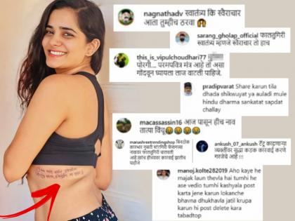 'स्वातंत्र्य म्हणजे स्वैराचार ज्याला म्हणतात तो हाच', असं एका नेटकऱ्याने म्हटलं आहे. तर, 'भाग्यश्री आणि हा टॅटू काढणाऱ्यावर कारवाई झाली पाहिजे', 'महामृत्युंजय मंत्रासारखा पवित्र मंत्र शरीरावर गोंदवून घेताना लाज वाटली पाहिजे', अशी टीका अनेक नेटकऱ्यांनी केली आहे.