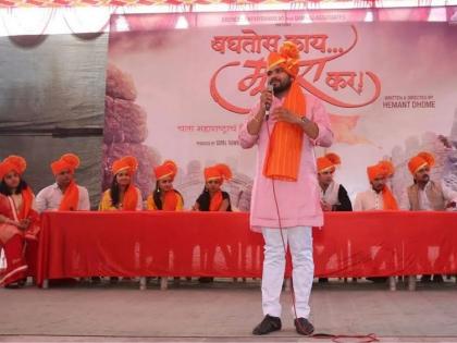 पंतप्रधान नरेंद्र मोदी यांच्या हस्ते छत्रपती शिवाजी महाराजांच्या भव्य स्मारकाचं भूमीपूजन नुकतंच झालं. ३६००० कोटी रुपये खर्चून हे स्मारक उभारण्याबरोबरच राज्यातील गडकिल्ल्यांचं संवर्धन करावं, असा सूर सोशल मीडियात दिसून येत आहे. या पार्श्वभूमीवर, गडकिल्ल्यांच्या संवर्धनाच्या विषयाला आणि शिवाजी महाराजांचं नाव वापरून केल्या जाणाऱ्या राजकारणाला वाचा फोडण्याचं काम बहुचर्चित 'बघतोस काय मुजरा कर' या चित्रपटातून केलं जाणार आहे. या चित्रपटाच्या ट्रेलरचं नुकतंच सिंहगडावर अनोख्या पद्धतीनं लोकार्पण करण्यात आलं. मराठी चित्रपटाच्या ट्रेलरचं लोकार्पण पहिल्यांदाच गडावर करण्यात आलं.