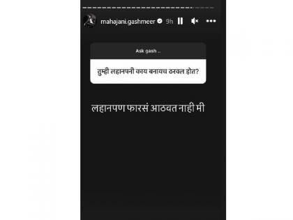 नुकतंच गश्मीरने त्याच्या इन्स्टाग्राम स्टोरीवर 'आस्क गश' हे सेशन घेतलं. यामध्ये त्याने परत काम कधी सुरु करणार? कठीण परिस्थितीला कसा सामोरा गेलास? आईची तब्येत कशी आहे? अशा काही प्रश्नांना उत्तरं दिली. दरम्यान एका चाहत्याने त्याच्या लहानपणीच्या आठवणींबाबत विचारलं. 'तुम्ही लहानपणी काय बनायचं ठरवलं होतं? असा प्रश्न एकाने विचारला. यावर गश्मीर म्हणाला, 'लहानपण फारसं आठवत नाही मी'.