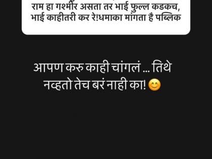 गश्मीर त्याच्या चाहत्यांसाठी अनेकदा इन्स्टाग्रामवर #askme सेशन घेताना दिसतो. नुकत्याच घेतलेल्या सेशनमध्ये गश्मीरला चाहत्याने आदिपुरुषबाबत प्रश्न विचारला. "आज आदिपुरुष पाहिला. सारखं वाटायचं इथे राम हा गश्मीर असता तर भाई फूल कडकच, भाई काहीतरी कर रे, धमाका मांगता है पब्लिक" असं चाहत्याने विचारलं होतं. चाहत्याच्या या प्रश्नाला गश्मीरने अगदी स्पष्ट शब्दांत उत्तर दिलं. गश्मीर म्हणाला, "आपण करू काही चांगलं...तिथे नव्हतो तेच बरं नाही का!"