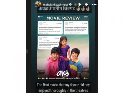 गश्मीरने त्याच्या चार वर्षाच्या मुलाबरोबर थिएटरमध्ये जाऊन 'नाळ २' हा चित्रपट पाहिला. चित्रपट पाहिल्यानंतर गश्मीर भारावून गेला आहे. त्याने इन्स्टाग्रामवर याबाबत पोस्ट शेअर केली आहे. "केवळ अप्रतिम चित्रपट...माझ्या चार वर्षांच्या मुलाला थिएटरमध्ये सिनेमा पाहताना मजा आलेला हा पहिला सिनेमा आहे," असं गश्मीरने पोस्टमध्ये म्हटलं आहे.