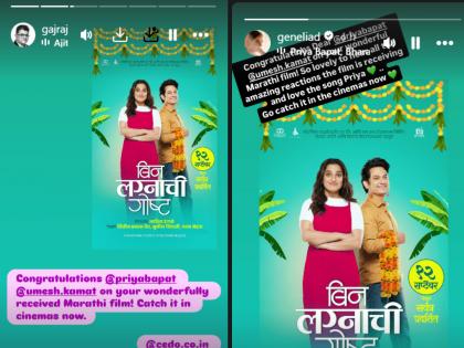 जिनिलिया देशमुखनेही केलं प्रिया-उमेशच्या सिनेमाचं कौतुक, बॉलिवूडच्या 'या' कलाकारांचीही पोस्ट