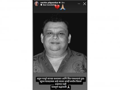 अभिनेते सचिन पिळगावकर लिहितात, " अतुल परचुरे सारखा कलाकार आणि मित्र गमवल्याचं दुखः खूपच त्रासदायक आहे त्याला आम्ही कधीच विसरू शकणार नाही भावपूर्ण श्रद्धांजली."