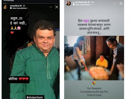 अभिनेत्री सोनाली कुलकर्णी लिहिते, "अतुल.. हे खरं नाही." अभिनेता - दिग्दर्शक योगेश देशपांडे लिहितो, "प्रिय अतुल पुढच्या कामासाठी लवकर भेटायचं म्हणून आपण आताच शूटींग संपवलं आणि आज मात्र तू..."