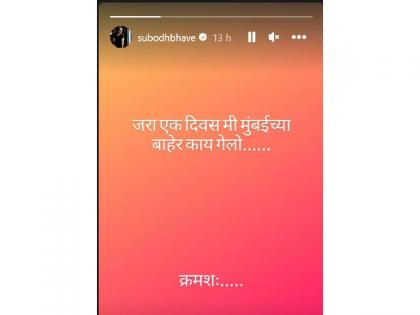 महाराष्ट्राच्याराजकारणात अचानक झालेल्या या बदलानंतर सर्वच सोशल मीडियावर तुटून पडले. तेजस्विनी पंडित, सोनाली कुलकर्णी सह काही मराठी कलाकार यावर व्यक्त झालेत. सुबोध भावेने एक अर्धवटच स्टोरी टाकत राजकीय नाट्यावरच प्रतिक्रिया दिल्याचं दिसतंय. त्याने स्टोरी पोस्ट करत लिहिले, 'जरा एक दिवस मी मुंबईच्या बाहेर काय गेलो....क्रमश:....'