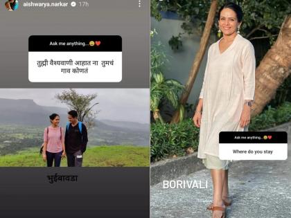 एवढंच नाही तर एका चाहत्याने ऐश्वर्या नारकर यांना त्या मुंबईत कुठे राहतात, असं विचारलं. त्यावर 'बोरीवली' मध्ये राहत असल्याचं त्यांनी सांगितलं. तसेच एका चाहत्याने त्यांना 'तुम्ही वैश्यवाणी आहात ना, तुमचं गाव कोणतं?', असा प्रश्न केला. यावर त्यांनी पती अविनाश नारकर यांच्यासोबत फोटो शेअर करत त्यांचं गाव हे 'भुईबावडा' असल्याचं सांगितलं.