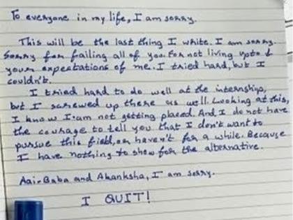 अक्षयने या सुसाईड नोटमध्ये लिहिलं की, ‘ही शेवटची गोष्ट असेल जी मी लिहितोय. आई, बाबा, आकांक्षा मला माफ करा. तुमच्या अपेक्षा मला पूर्ण करता आल्या नाहीत यासाठी मी माफी मागतो. मी खूप प्रयत्न केले पण मला जमलं नाही. माझ्या इन्टर्नशिपमध्ये मी चांगली कामगिरी केली नाही आणि त्यामुळे मला माहित आहे की मला चांगली नोकरी मिळणार नाही. हे सगळं तुम्हाला सांगायची माझ्यात हिंमत नाही. आता माझ्याकडे याशिवाय कोणताच पर्याय नाही. आई बाबा आकांशा मला माफ करा. तुमचा अक्षय माटेगावकर.”