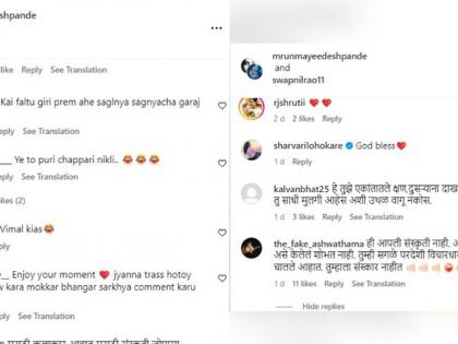 इतकंच नाही तर, 'काय फालतूगिरी आहे प्रेम आहे तर सगळ्यांना सांगायची काय गरज?', 'मराठी कलाकार आहात मराठी संस्कृती जोपासा, हल्ली प्रेम जगजाहीर करायची फॅशनच झाली. चांगल म्हणता म्हणता काहीतरी अस करायच', अशा कितीतरी कमेंट करत नेटकऱ्यांनी तिला ट्रोल केलं आहे.