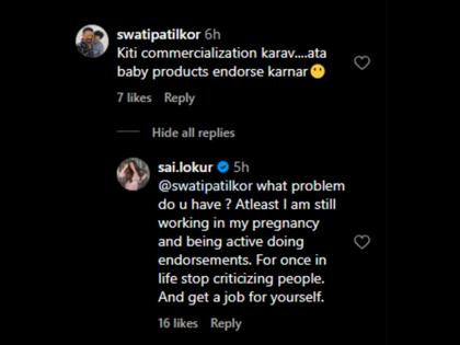 गरोदरपणातील काळ सई एन्जॉय करत आहे. सई अनेक व्हिडिओ शेअर करत असते. नुकतंच सईने इन्स्टाग्रामवरुन तिचा एक व्हिडिओ शेअर केला आहे. या व्हिडिओमध्ये ती एका बेबी प्रॉडक्टची जाहिरात करताना दिसत आहे. सईच्या या व्हिडिओवर एका नेटकऱ्याने कमेंट केली आहे. "किती व्यावसायिकरण करणार...आता बेबी प्रॉडक्टचीही जाहिरात करणार", असं नेटकऱ्याने म्हटलं होतं. त्याच्या या कमेंटवर सईने सडेतोड उत्तर दिलं आहे.
