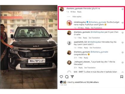 माझी लक्ष्मी असं कॅप्शन देत मितालीने तिच्या नव्या कारचे काही फोटो आणि व्हिडीओ सोशल मीडियावर शेअर केले. हे फोटो पाहून अनेकांनी त्यावर कमेंटचा वर्षाव केला. यामध्येच एका युजरने तिला मर्सिडीज घ्यायची ना, अशी खोचक कमेंट केली. या युजरला मितालीनेही उत्तर दिलं आहे.