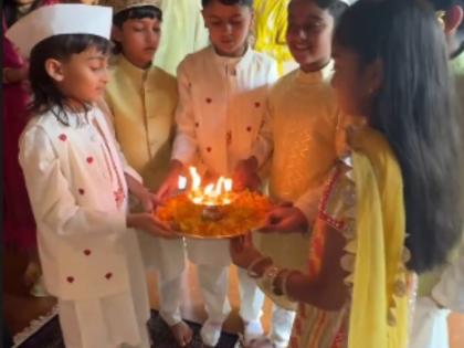 देशमुखांच्या घरी बाप्पाचं आगमन; चिमुकल्यांनी केली लाडक्या गणरायाची आरती, नेटकऱ्यांकडून कौतुक