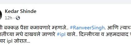‘याक्षणी बक्कळ पैसा कमावणारे म्हणजे... रणवीर सिंग आणि त्याच्या जाहिरातींच्यामधे दाखवले जाणारे आयपीएलवाले. दिल्लीच्या व अहमदाबादच्या सरणावर आयपीएल जोरावर...’, अशा आशयाची पोस्ट त्यांनी लिहिली आहे.