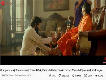 धर्मवीर: 'गुरुपौर्णिमा'ला मिळतोय उदंड प्रतिसाद; अवघ्या २० तासांमध्ये मिळाले २० लाखांपेक्षा जास्त व्ह्यूज
