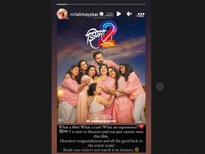 प्रेक्षकांबरोबरच अनेक कलाकरही 'झिम्मा २'चं कौतुक करत आहेत. आता मिताली मयेकरने 'झिम्मा २'साठी खास पोस्ट शेअर केली आहे.