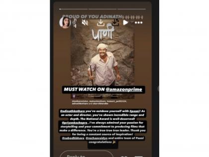 'पाणी' सिनेमा पाहिल्यानंतर मृणालने इन्स्टाग्रामवर स्टोरी शेअर केली आहे. या स्टोरीमधून तिने आदिनाथ कोठारेच्या कामाला दाद दिली आहे. तर सिनेमात असलेल्या सुबोध भावे, ऋचा वैद्य यांच्या अभिनयाचं कौतुक केलं आहे. "आदिनाथ पाणी सिनेमासाठी उत्कृष्ट कामगिरी केली आहे. एक अभिनेता आणि दिग्दर्शक म्हणून तू अतुलनीय झलक दाखवली आहेस. राष्ट्रीय पुरस्कारासाठी तुम्ही पात्र आहेत. प्रियांका चोप्रा कथानक सांगण्यासाठी असलेली तुझी आवड आणि समाजात बदल घडवून आणणाऱ्या सिनेमांची निर्मिती करणे याचं मला नेहमी कौतुक वाटतं. तू एक खरी लीडर आहेस. माझा नेहमी आदर्श बनण्याबद्दल आभारी आहे. सुबोध भावे, ऋचा वैद्य आणि संपू्र्ण टीमचं अभिनंदन", असं मृणालने म्हटलं आहे.