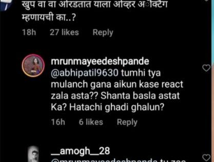 समोर असलेले जज आणि अँकर खूपच आरडा ओरडा करतात. यावर शांत न बसता मृण्मयीनेही ट्रोलर्सला चांगलेच उत्तर देत त्यांची बोलती बंद केली आहे. 'तुम्ही या मुलांचं गाणं ऐकून काय केलं असतं? शांत बसला असतात का ?' मृण्मयीने दिलेले सडतोड उत्तर वाचून अनेकांनी प्रतिक्रिया देत मृण्मयीलाच सपोर्ट केल्याचे पाहायला मिळत आहे. तर काहींनी जुनेच पर्व चांगले असल्याचे म्हणत त्यावेळी सुत्रसंचालन करणारी पल्लवी जोशीची आठवण काढताना दिसले.