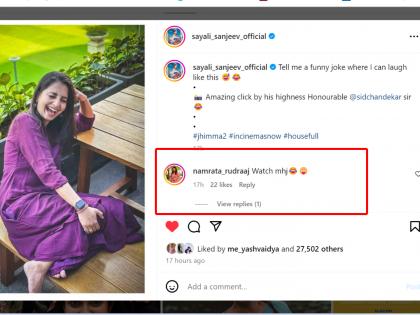 नम्रता संभेरावने या फोटोवर कमेंट करत सायलीला महाराष्ट्राची हास्यजत्रा बघण्याचा सल्ला दिला आहे. "महाराष्ट्राची हास्यजत्रा बघ" अशी कमेंट नम्रताने सायलीच्या पोस्टवर केली आहे. तिच्या या कमेंटवर रिप्लाय करत सायलीने हसण्याचे इमोजी पोस्ट केले आहेत.