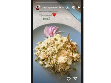 लग्नाला एक महिना पूर्ण झाल्याचं निमित्त साधून पूजासाठी सिद्धेशने खास पदार्थ बनवला. याचा फोटो पूजाने तिच्या इन्स्टाग्राम स्टोरीमध्ये शेअर केला आहे. पूजासाठी सिद्धेशने खास पुलाव बनवल्याचं फोटोत पाहायला मिळत आहे. या फोटोला तिने "लग्नाला एक महिना पूर्ण झाल्याने नवऱ्याकडून खास ट्रीट", असं कॅप्शन दिलं आहे. सुख कळले हे गाणंही तिने या फोटोला दिलं आहे. लग्नानंतर पूजा नवऱ्याबरोबर तिचा वेळ आनंदान घालवत आहे.