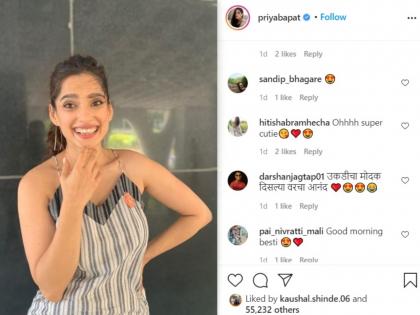 सोशल मीडियावर प्रिया बापट बरीच अॅक्टिव्ह आहे. ती नेहमी आपल्या आगामी प्रोजेक्टबद्दल अपडेट सोशल मीडियाच्या माध्यमातून देत असते. प्रियाने इन्स्टाग्रामवर तिचा फोटो शेअर केला आहे. या फोटोत ती फ्रेश मूडमध्ये कॅमेऱ्याकडे बघून हसताना दिसतेय. सोशल मीडियावर तिचा हा फोटो व्हायरल झाला आहे. प्रियाचा हा फोटो तिच्या चाहत्यांना ही आवडला आहे. एका यूजरने उकडीचा मोदक दिसल्यावरचा आनंद अशी कमेंट केली आहे. या कमेंटने सगळ्यांचं लक्ष वेधून घेतलं आहे.