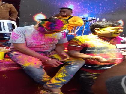 आज आसंमतामध्ये रंग बरसेचा नाद घुमतोय... लहानथोर सारेच विविध रंगात रंगून गेलेत... त्यामुळे आपले सेलिब्रेटी मंडळीतरी कसे मागे राहणार ते ही होळीच्या रंगात रंगून गेल्याचे पाहायला मिळत आहे. आनंद आणि जल्लोषाचा सण रंगपंचमी.... सारेच होळी रे होळी म्हणत रंगात न्हाऊन गेलेत....रंगकर्मी होळीचे सेलिब्रेशन जोरदार झाल्याचे पाहायला मिळाले. मराठी कलाकारांची दोन गटात साजरी होणारी रंगपंचमी “रंगकर्मी ” निमित्ताने एकत्रित साजरी करण्यात आली. ही मंडळी एकत्र जमून ह्या सोहळ्याचा आनंद लुटताना दिसले.