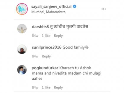 तिच्याविषयी जाणून घेण्यात तिच्या चाहत्यांनाही प्रचंड रस असतो. मुळात जेव्हा जेव्हा चाहते सायली संजीवला पाहतात तेव्हा ती अभिनेता अशोक सराफ आणि निवेदिता सराफ यांचीच मुलगी असल्याचे अनेकांना वाटते. अनेकदा तिला याविषयीचे प्रश्न विचारले जातात. एका मुलाखतीत तिला एका चाहत्याने ती अशोक सराफ आणि निवेदिता यांची मुलगी आहे का ? असा प्रश्न विचारला. त्यावेळी तिनेही असे तुम्ही समजु शकता असे उत्तर दिले.