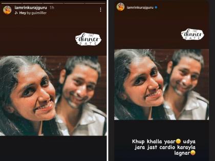 रिंकू राजगुरूने इंस्टाग्रामवर सैराटमधील तिचा सहकलाकार आकाश ठोसर (Aakash Thosar)सोबतचे फोटो शेअर केला आहे आणि लिहिले की डिनर डेट. तर तोच फोटो आकाश ठोसरने इंस्टाग्राम स्टोरीवर शेअर करत लिहिले की, खूप खाल्लं यार. उद्या जरा जास्त कार्डिओ करायला लागणार. तसेच रिंकू राजगुरूने आकाश ठोसरने तिचा तिच्या गाडीतला व्हिडीओ पोस्ट केलेला शेअर करून लिहिले की, लवकरच पुन्हा भेटू.