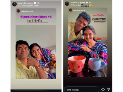 सिद्धार्थ जाधवनं काल त्याच्या इन्स्टाग्राम स्टोरीवर रिंकू राजगुरूसोबतचे फोटो शेअर केले. ज्यातील एका फोटोत त्यानं राखी बांधलेला हात दाखवला आणि कॅप्शनमध्ये लिहलं, "रिंकू राजगुरू ताई... #खारीबिस्किट". दुसऱ्या फोटोत दोघेही हसताना दिसत आहेत. या फोटोला सिद्धार्थनं फोटोला "#खारीबिस्किट #रक्षाबंधनस्पेशल" असं कॅप्शन दिलं. या फोटोंमध्ये रिंकू आणि सिद्धार्थ दोघेही सिंपल लूकमध्ये दिसले. सिद्धार्थनं शेअर केलेले हे फोटो रिंकूनंही तिच्या इन्स्टाग्राम स्टोरीवर शेअर केले.