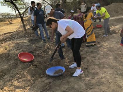 सई ताम्हणकरने पुण्याजवळच्या सुकळवाडी गावात केले श्रमदान,पाहा फोटो