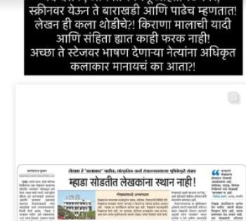 यावर आता विविध माध्यमातून तीव्र प्रतिक्रिया उमटत आहेत. अशातच प्रसिद्ध मराठी दिग्दर्शक समीर विद्वांसने आपली नाराजी व्यक्त केली आहे. समीर विद्वांसने सोशल मीडियाच्या माध्यमातून घडल्या प्रकाराबद्दल निषेध व्यक्त केला आहे. आपल्या इन्स्टाग्राम अकाउंटवर पोस्ट शेअर करत त्याने लिहलंय, " बरोबरंच आहे! लेखक कलाकार नाहीतच! सगळे दिग्दर्शक, अभिनेते स्वयंभू आहेत! स्टेजवर स्क्रीनवर येऊन ते बाराखडी आणि पाढेच म्हणतात लेखन ही कला थोडी आहे? किराणा मालाची यादी आणि संहिता यात काही फरक नाही! अच्छा, ते स्टेजवर भाषण देणाऱ्या नेत्यांना अधिकृत कलाकार मानायचं का आता?" अशा तिखट शब्दात त्याने प्रशासनाच्या कार्यप्रणालीवर टीका केली आहे.
