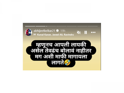सुशील केडिया यांनी राज ठाकरेंची माफी मागत व्हिडीओमध्ये म्हटलं की, " राज ठाकरे यांच्याबद्दल मला नेहमीच आदर, कृतज्ञता वाटत आली आहे. मी माझी चूक मी स्विकारतो. तसेच मी आता अपेक्षा करतो की वातावरण शांत करावं, मी त्यांचा आभारी आहे", असं केडिया यांनी म्हटलं. यावर अभिजितनं इन्स्टाग्रामवर केडिया यांच्या माफीनाम्याची एक स्टोरी शेअर करत लिहलं, "'म्हणूनच आपली लायकी असेल तेवढंच बोलावं. नाहीतर मग अशी माफी मागायला लागते". यासोबतच अभिनेत्यानं हसण्याचे इमोजी पोस्ट केला. अभिजित हा कायम समाजातील गंभीर मुद्द्यांवर अगदी निर्भिडपणे त्याचं मत मांडत असतो.