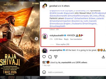 'छावा' फेम विकी कौशलने रितेश देशमुखच्या 'राजा शिवाजी' सिनेमाच्या पोस्टरवर कमेंट केली आहे. छावामध्ये विकी कौशलने छत्रपती संभाजी महाराजांची भूमिका साकारली होती. रितेशला शिवरायांच्या रुपात पाहून विकी कौशल आश्चर्यचकित झाला आहे. या सिनेमाच्या पोस्टरवर त्याने "आबासाहेब..." अशी कमेंट केली आहे. विकी कौशलच्या या कमेंटची प्रचंड चर्चा रंगली आहे. विकी कौशलने अशी कमेंट करत रितेशला मानाचा मुजरा दिला आहे. ही कमेंट सोशल मीडियावर मोठ्या प्रमाणात व्हायरल होत असून चाहत्यांकडून 'शंभूराजेंनी शिवरायांना दिलेली ही साद' असल्याचे म्हटले जात आहे.