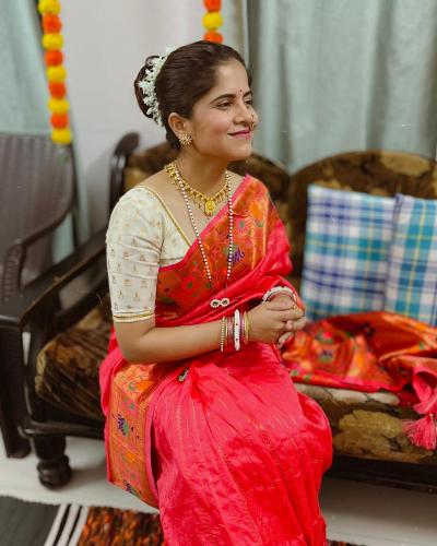 अमृताने खास माहेरची साडी नेसलीय