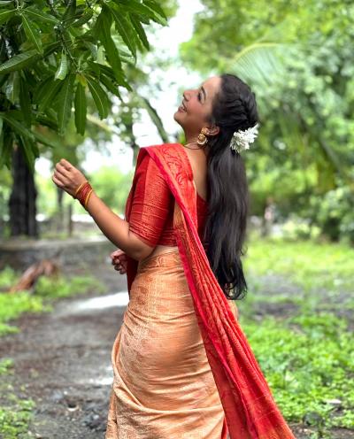 ईशाने नुकतेच केशरी साडीत फोटो शेअर केले आहेत. लांब केस, केसात गरजा, साजेसे दागिने यामध्ये ती खूप सुंदर दिसत आहे. 'ईश्शsss' असं कॅप्शन तिने दिलं आहे. तर त्यावर अमेयने 'इशाsss'अशी कमेंट केली आहे.