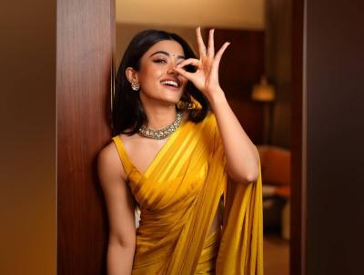 पिवळ्या रंगाची साडी त्यावर स्लिव्हलेस ब्लाऊज तसेच खड्यांचा नेकलेस घालून तिने लूक पूर्ण केला आहे.