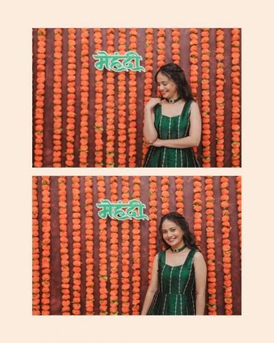 रुजूता धारपने मेहंदी काढताना खास फोटोशूटही केलेलं दिसतंय