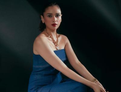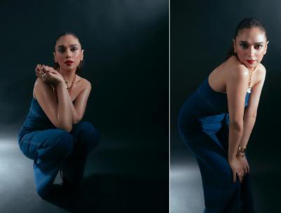 या सुंदर निळ्या रंगाच्या ड्रेसवर तिनं गोल्डन ज्वेलरी कॅरी केली आणि क्लासी मेकअपनं तिच्या लुकमध्ये अजूनच भर टाकली आहे.