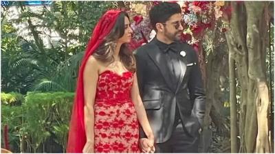 शिबानीने विवाहामध्ये रेड कलरचा गाऊन परिधान केला होता. ज्यामध्ये ती खूप सुंदर दिसत होती. तर फरहानने ब्लॅक कलरचा सूट परधान केला होता.