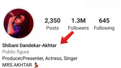 आता विवाहानंतर शिबानी दांडेकरने इन्स्टाग्रामवर आपल्या नावासमोर फरहान अख्तरचं आडनाव लावलं आहे. आता तिचं नाव शिबानी दांडेकर-अख्तर आहे. त्याच्यासोबत बायोमध्ये मिसेस अख्तर लिहिले आहे.