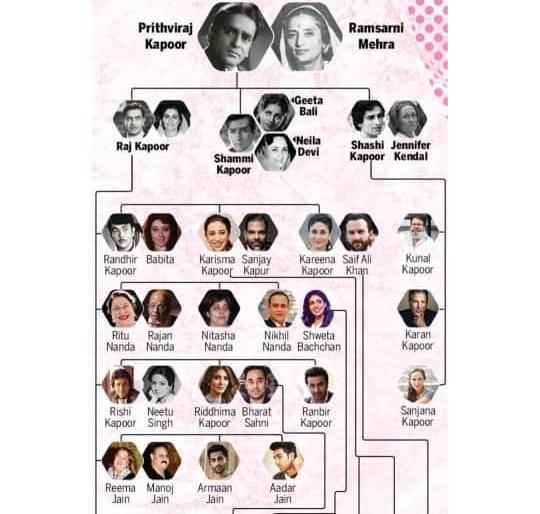 1 / 13कपूर घराणे (Kapoor Family) हे बॉलिवूडमधील सर्वात मोठे फिल्मी कुटुंब आहे. या कुटुंबातील ५ पिढ्या १९२८ पासून आतापर्यंत भारतीय चित्रपट उद्योगाशी निगडीत आहेत. पृथ्वीराज कपूर हे या कुटुंबातील पहिले व्यक्ती होते ज्यांनी सर्वात आधी बॉलिवूडमध्ये एन्ट्री केली. 2 / 13या कुटुंबातील जवळपास ३० जणांनी बॉलिवूडमध्ये काम केले आहे. आलिया भट(Alia Bhatt)चेही नाव लवकरच कपूर कुटुंबाशी जोडले जाणार आहे. 'नवाब फॅमिली'नंतर आता 'कपूर फॅमिली' लवकरच 'भट फॅमिली'सोबत नातेसंबंध बनवणार आहे.3 / 13बॉलिवूड अभिनेता पृथ्वीराज कपूर (Prithviraj Kapoor) यांनी रामसरानी मेहरासोबत लग्न केले. त्यांना राज कपूर, शम्मी कपूर, शशी कपूर आणि उर्मिला कपूर ही चार मुले होती.4 / 13बॉलिवूड अभिनेता राज कपूर (Raj Kapoor) यांनी कृष्णा मल्होत्रासोबत लग्न केले. त्यांना रणधीर कपूर, ऋषी कपूर, राजीव कपूर, रतु नंदा आणि रीमा जैन अशी तीन मुले आणि 2 मुली आहेत.5 / 13बॉलिवूड अभिनेता शम्मी कपूर (Shammi Kapoor) यांनी १९५५ मध्ये बॉलिवूड अभिनेत्री गीता बालीसोबत लग्न केले. शम्मी-गीता यांना आदित्य राज कपूर आणि कांचन केतन देसाई ही दोन मुले आहेत. गीताच्या मृत्यूनंतर शम्मी कपूरने नीला देवीसोबत दुसरे लग्न केले.6 / 13बॉलिवूड अभिनेते शशी कपूर (Shashi Kapoor) यांनी इंग्लिश अभिनेत्री जेनिफर केंडलसोबत लग्न केले. त्यांना करण कपूर, कुणाल कपूर आणि संजना कपूर ही तीन मुलं आहेत.7 / 13बॉलिवूड अभिनेते रणधीर कपूर (Randhir Kapoor) यांनी बॉलिवूड अभिनेत्री बबिता यांच्यासोबत लग्न केले. रणधीर आणि बबिता यांना करिश्मा कपूर आणि करीना कपूर या दोन मुली आहेत.8 / 13बॉलिवूड अभिनेते ऋषी कपूर (Rishi Kapoor) यांनी प्रसिद्ध बॉलिवूड अभिनेत्री नीतू सिंग(Nitu Singh) यांच्यासोबत लग्न केले. ऋषी आणि नीतू यांना रणबीर कपूर आणि रिद्धिमा कपूर साहनी ही दोन मुले आहेत.9 / 13बॉलिवूड अभिनेते राजीव कपूर (Rajiv Kapoor) यांनी आरती सभरवालसोबत लग्न केले. त्यांना मूलबाळ नाही, लग्नानंतर लगेचच त्यांचा घटस्फोट झाला.10 / 13शम्मी कपूर यांचा मुलगा बॉलिवूड अभिनेता आदित्य राज कपूर (Aditya Raj Kapoor) यांनी प्रीती कपूर यांच्यासोबत लग्न केले. आदित्य आणि प्रीती यांना विश्व कपूर आणि तुलसी कपूर ही दोन मुले आहेत.11 / 13शशी कपूर यांचा मुलगा बॉलिवूड अभिनेता कुणाल कपूर (Kunal Kapoor) यांनी शीना सिप्पी यांच्यासोबत लग्न झाले आहे. कुणाल आणि शीना यांना जहान पृथ्वीराज कपूर आणि शायरा लॉरा कपूर ही दोन मुले आहेत.12 / 13बॉलिवूड अभिनेते शशी कपूर यांचा मुलगा करण कपूर (Karan Kapoor) यांचे लग्न लोर्ना कपूर यांच्यासोबत झाले आहे. करण आणि लोर्ना यांना आलिया कपूर आणि जॅक कपूर ही दोन मुले आहेत.13 / 13कपूर कुटुंबातील सदस्य रणबीर कपूर (Ranbir Kapoor) या महिन्यात १४ ते १७ एप्रिल दरम्यान बॉलिवूड अभिनेत्री आलिया भट(Alia Bhatt)सोबत लग्न करणार आहे. अशाप्रकारे आलिया कपूर घराण्याची ११वी 