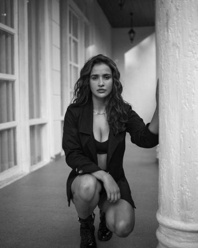 अभिनेत्री नेहा शर्माची बहिण आयशा शर्माचे ग्लॅमरस फोटोशूट, ब्लॅक ड्रेसमध्ये दिसली स्टायलिश