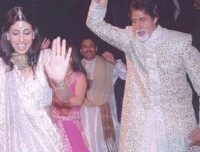 या फोटोत अमिताभ बच्चन त्यांची लेक श्वेतासोबत थिरकताना दिसत आहेत. अभिषेकच्या लग्नाचा उत्साह अमिताभ यांच्या चेहऱ्यावर ओसंडून वाहतोय