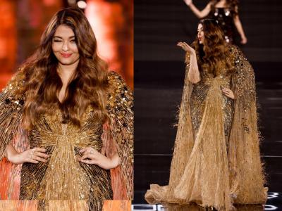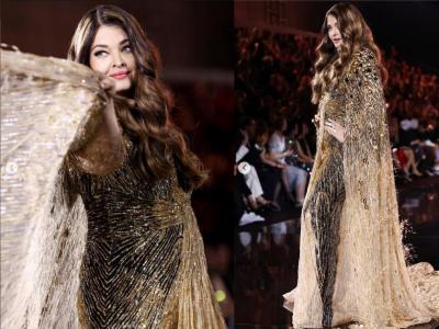 पॅरिस फॅशन वीकमध्ये ऐश्वर्याने सोनेरी रंगाचा चमचमता गाऊन परिधान केला होता. यात ती कमालीची सुंदर दिसत होती.